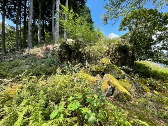 車で10分位山道をひたすらに登って舗装済みの駐車場に停めて、そこから歩いて10分位、すぐに巨岩の石垣が現れます。