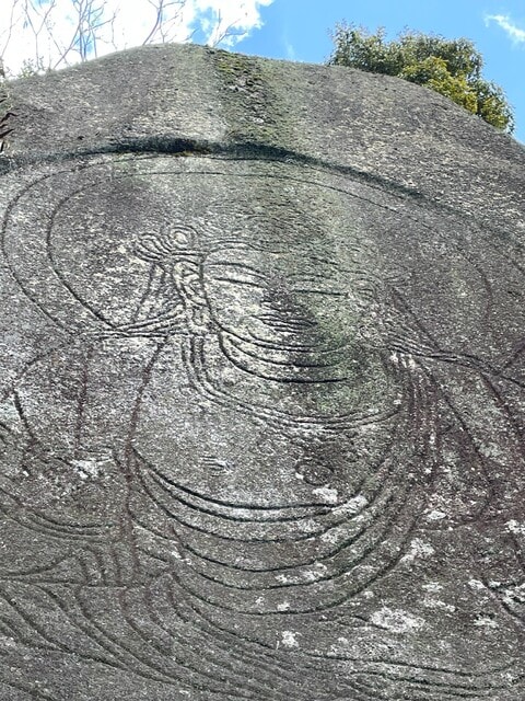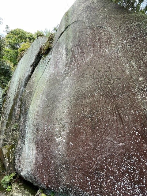 助かった皇子の発願で、天武天皇によって造立された弥勒摩崖仏です。