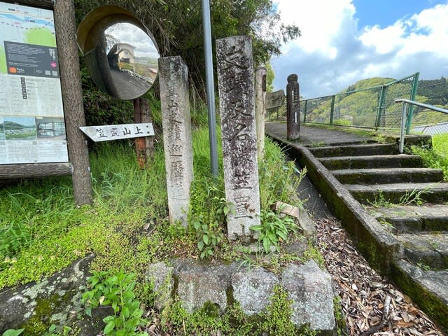 車に抜かされたりしてヒィヒィ喘ぎながら登ると、おや石柱が。