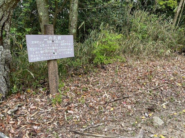 二の丸跡に来ました。屋根付き休憩所とベンチが幾つかあるだけです。