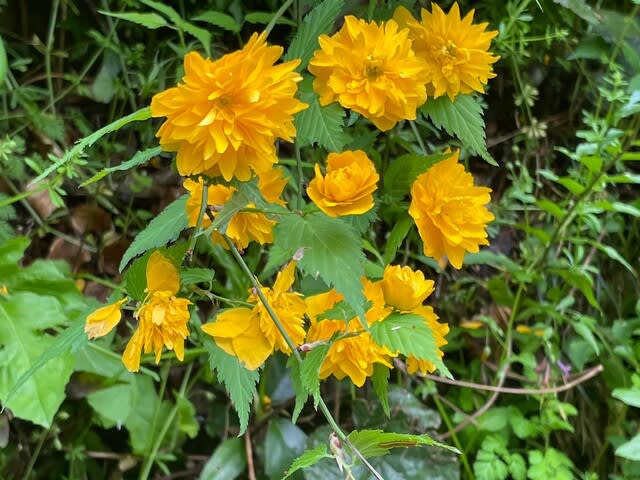 可憐な山吹の花が私を迎えてくれます。何ちて。