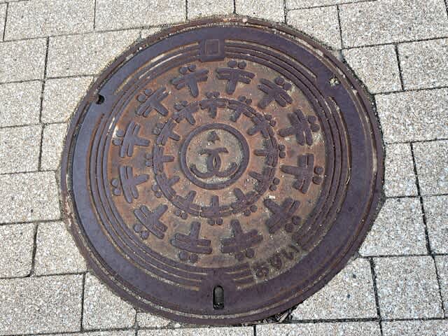 マンホールに目をやると、赤とんぼと脇坂氏家紋輪違のミックス。