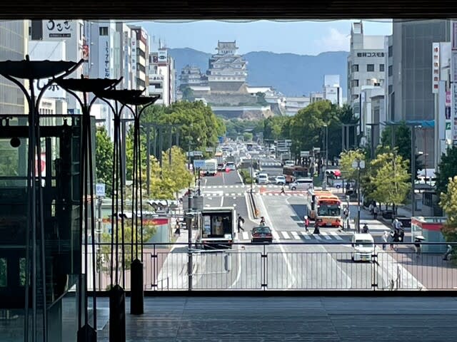 姫路駅からは白鷺城が見えますよ、ほら。