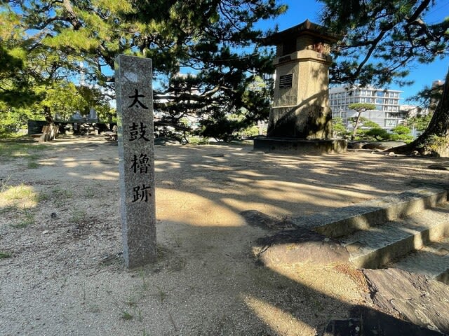 手前の石垣に登れました、太鼓櫓跡だそうです。