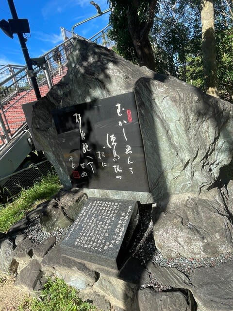 左にある歩道を渡ると、いきなり舌石の説明がありました。