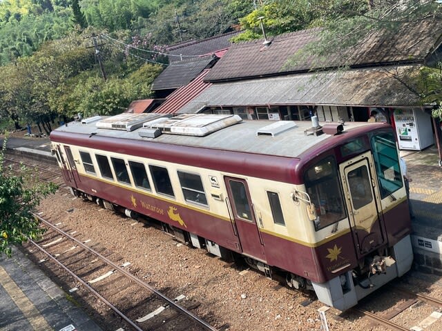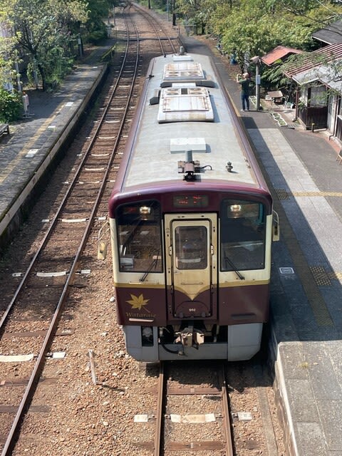 桐生、相老方面へのトロッコ列車が入ってきました。