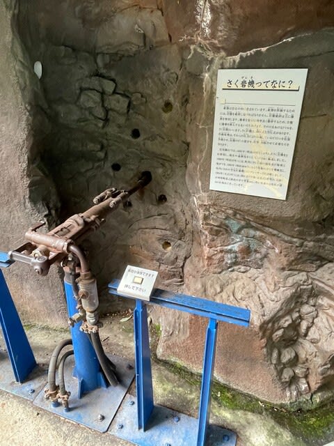 削岩機の体験ができました。結構ブルブル、振動がブルブル、手にブルブル、来ますブルブル