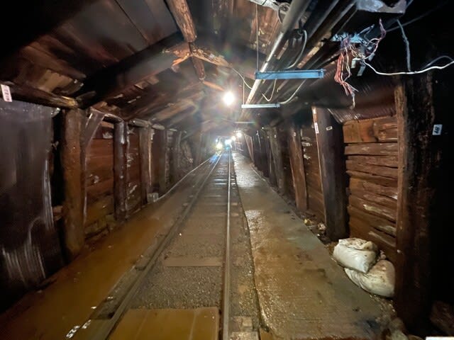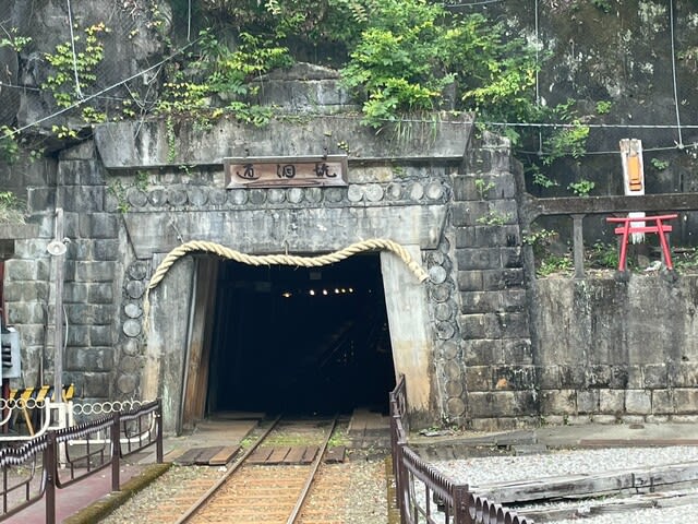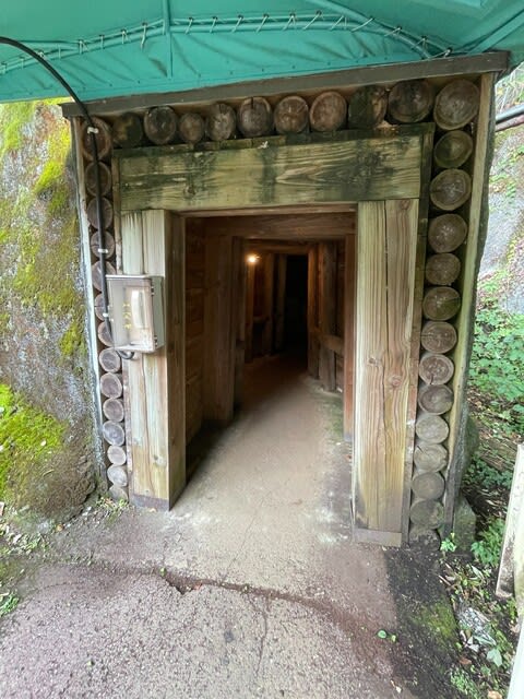 坑道見学のトロッコはこの中へ入って行くのです。