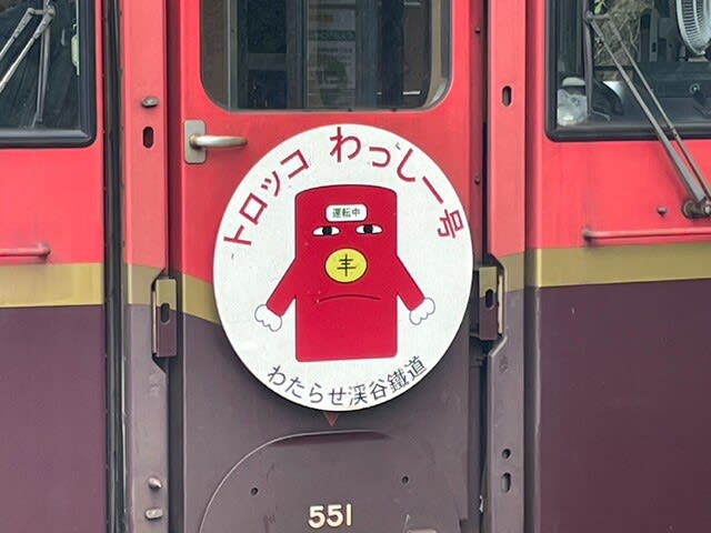 上り方面のわたらせ渓谷鉄道の座席表には、たぬきを被ったわっしー君がいました。