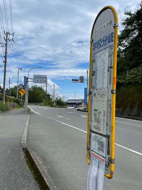 13時9分のバスに乗って30分ほど、学校分岐のバス停に到着しました。