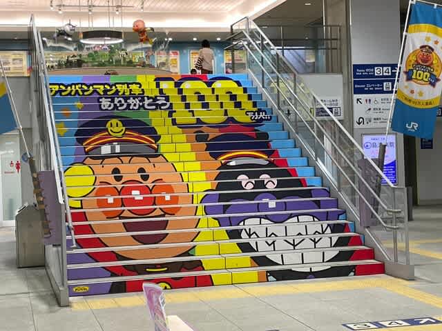 高知駅の階段はアンパンマン。お子さんたちにはたまらないでしょう。