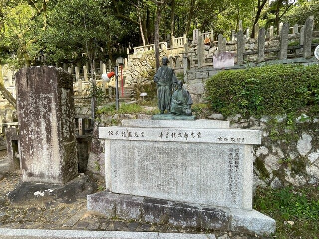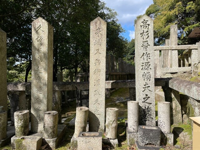 戻ってくる途中には、長州藩のトリックスターいや破壊神かな、高杉晋作が眠っています。本物のお墓は下関の東行庵にあるんですよ。