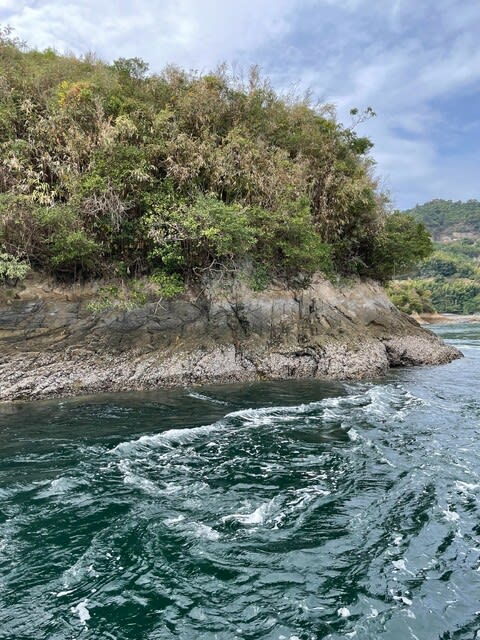 船を停めると、船体が強い流れで持っていかれるのが分かりました。