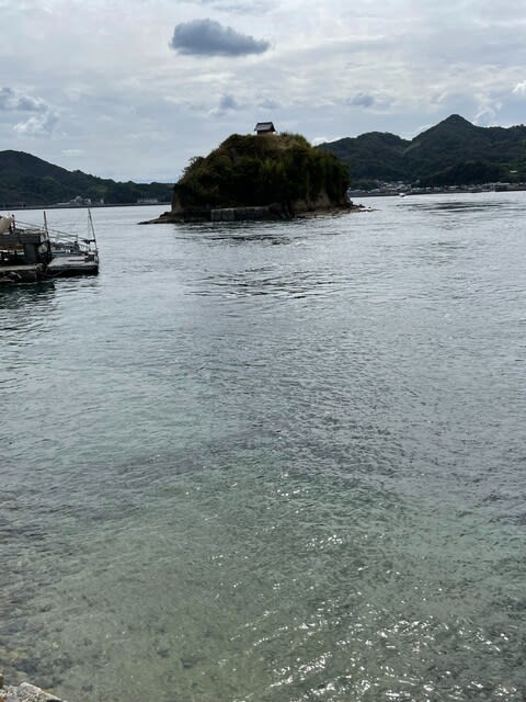 桟橋から社が見えます、そうです、鯛崎島として独立しているのです。