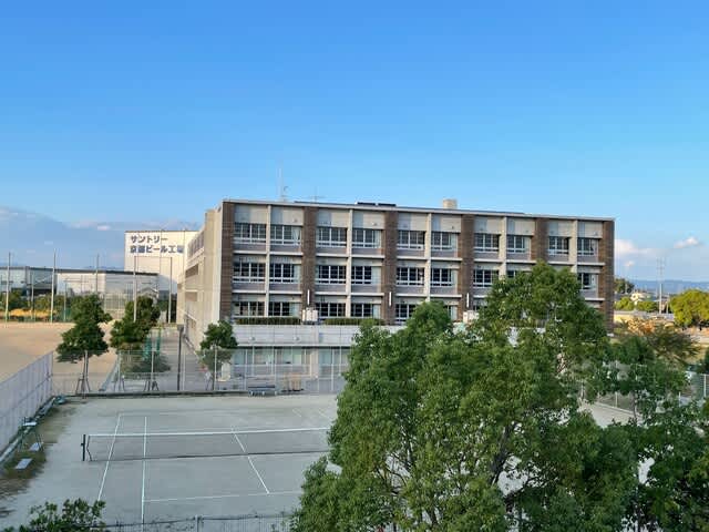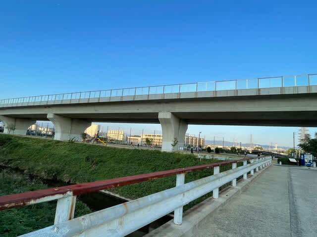 大山崎中学校に来ました。目の前に陸橋がありました。