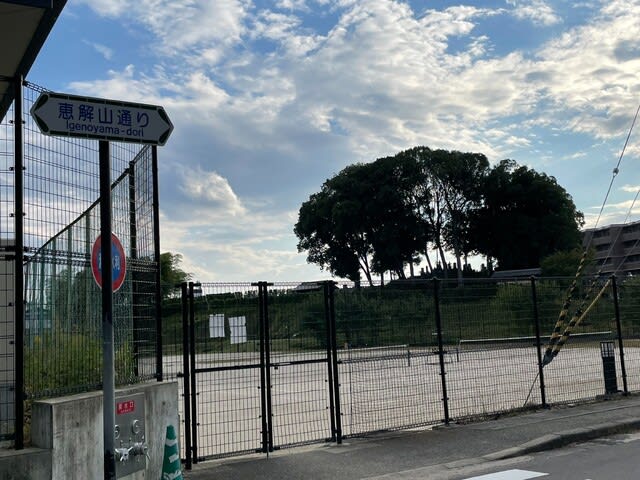 小学校と中学校の間にこんもりとした丘が見えてきましたよ。