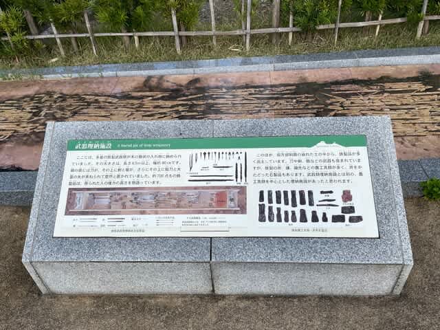 一番上に埋葬されたもののイラストがありました。武器ばっかり埋葬されていたのですねえ。