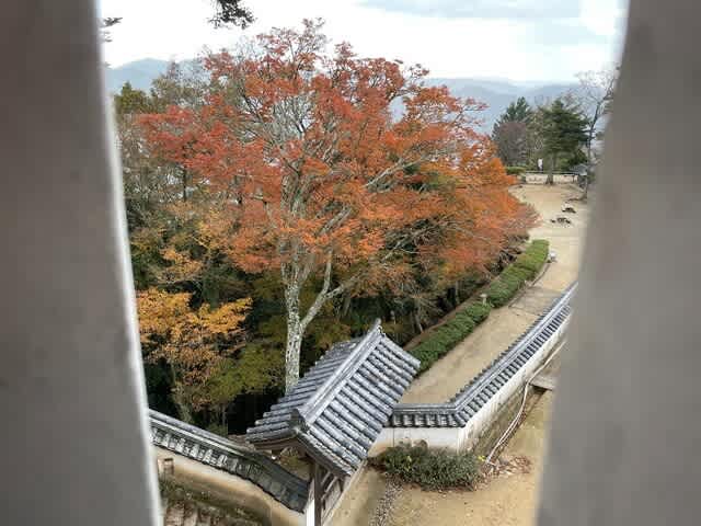 食事を終えてお城に近づきます。右横の紅葉が美しいです。