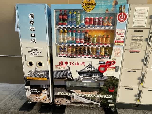 備中高梁駅です。自動販売機もお城と城主なんです。