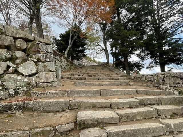 石階段を登って入場券、御城印、お城カードを入手。ミッションは半ばコンプリートです。