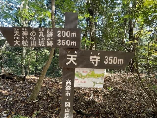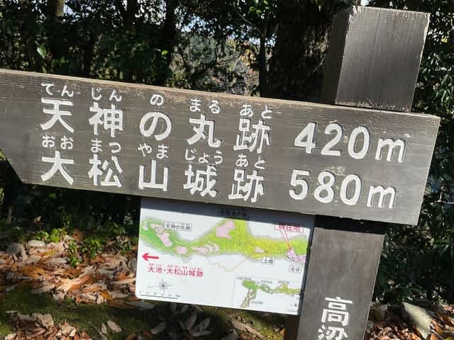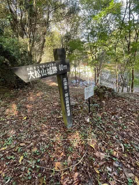 指示板には大松山城跡まで580メートルと記されています。