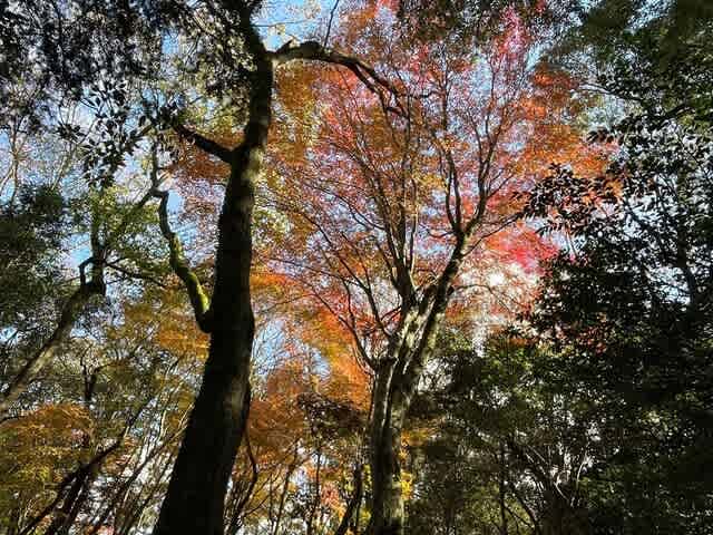 見上げると紅葉が見えました。