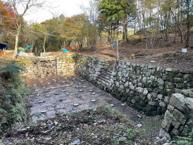 石垣の修復作業ですね。今日はお休みみたいですが、頭が下がりますね。