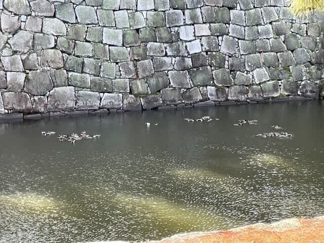 お堀沿いに鴨ちゃんの集団がいました。
