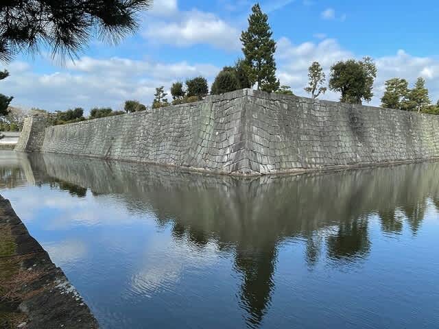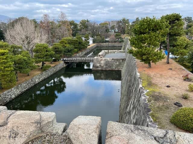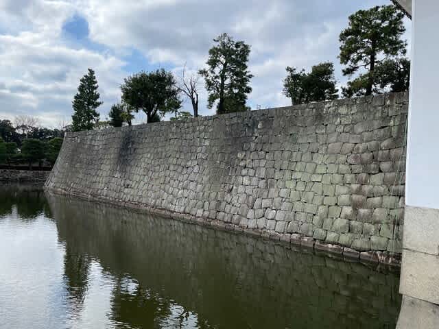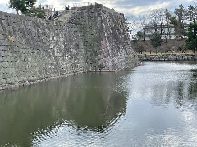 桃山門から見えた本丸堀と石垣。