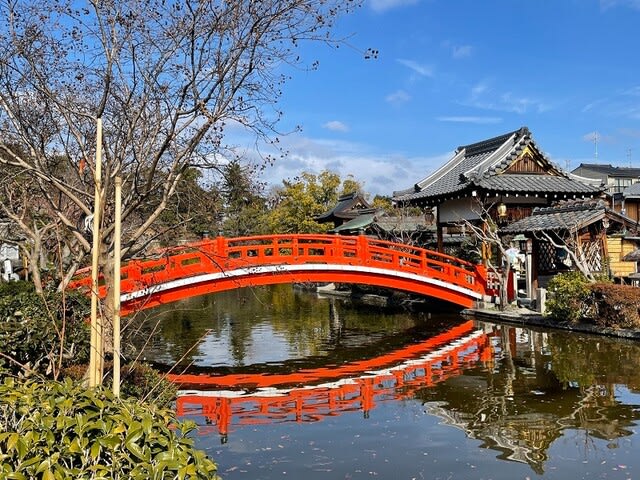 赤い法成橋。結構、勾配がキツいんです。