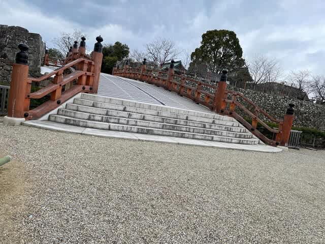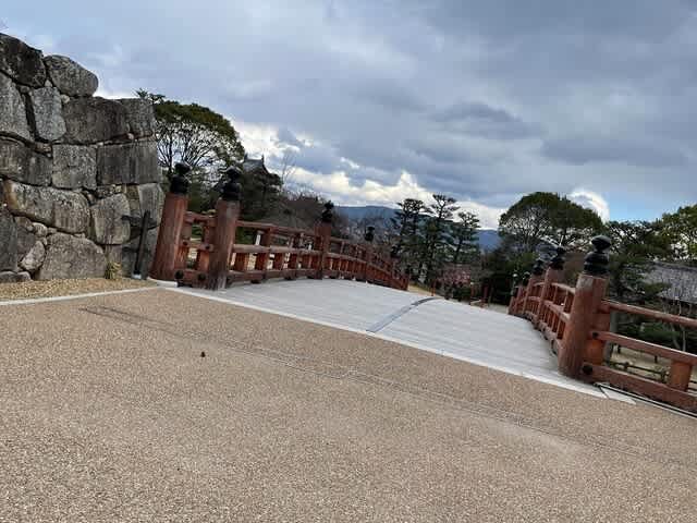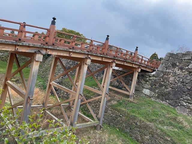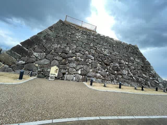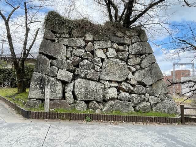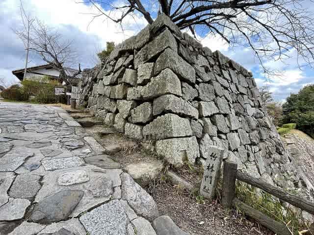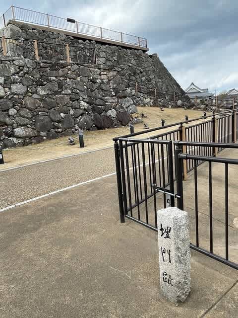 お城の東に行くための橋にも門の跡。こちらも石垣がぎっしりとありました。