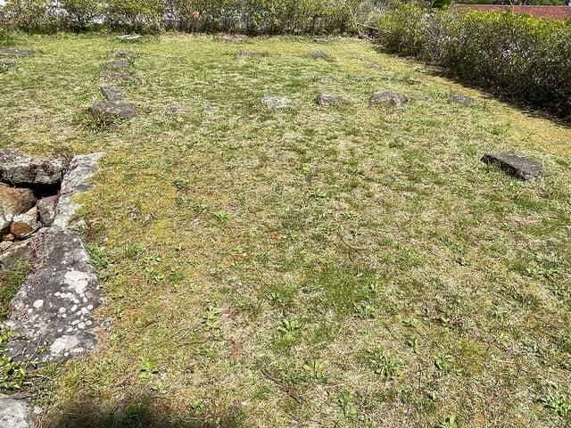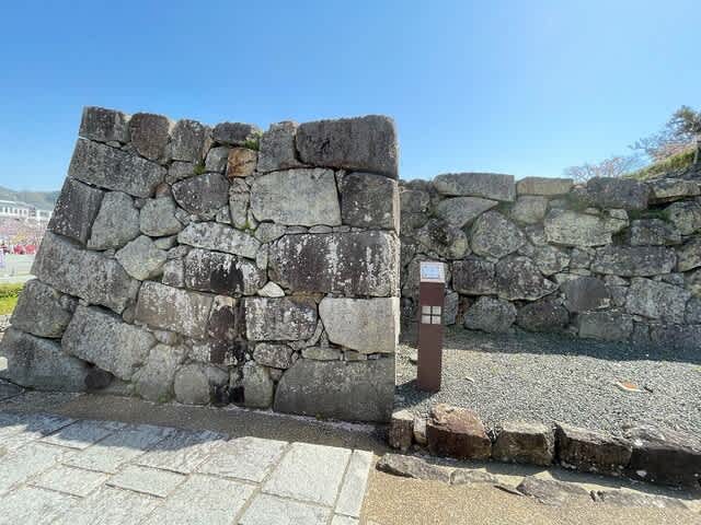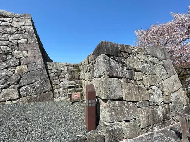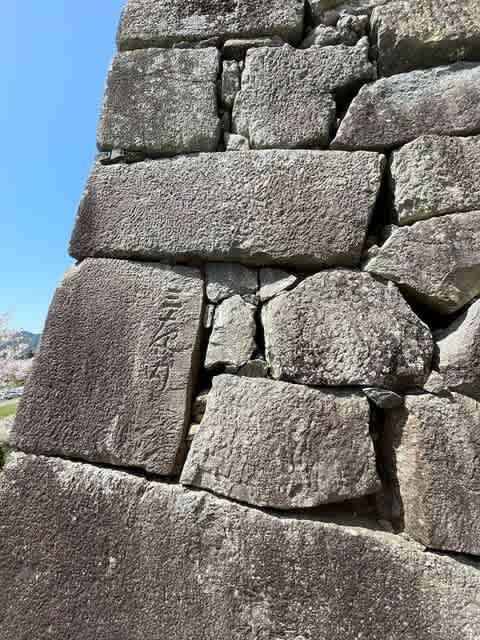 石垣に紋が刻んであるのが分かりますか?〇書いて小、とあるようです。