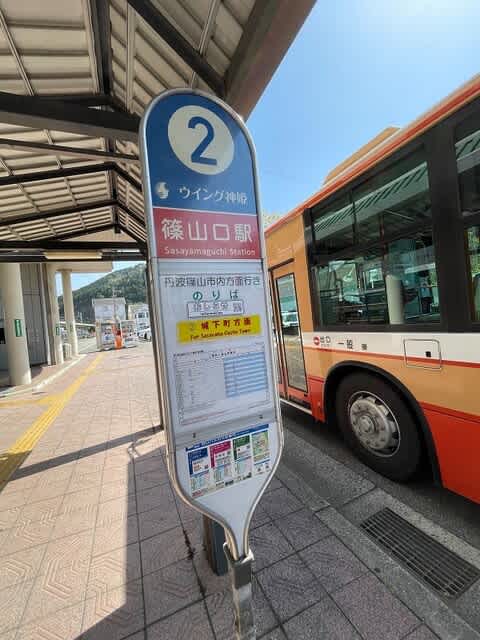 篠山城へはこの2番バス停から神姫バスさんで出発です。