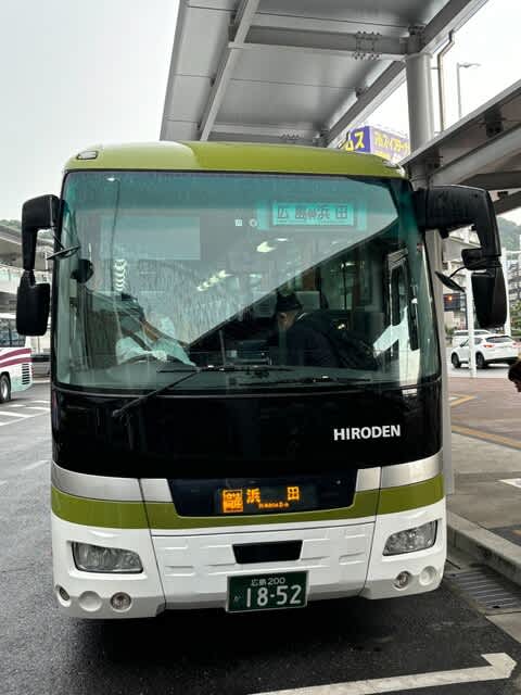 ここから広島電鉄バスさんで高速バスに乗ります。あっ、雨です、結構降ってる(´・ω・`)