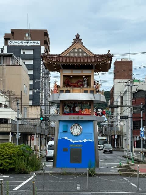 12時ちょうど駅前のからくり時計が動き出しました。