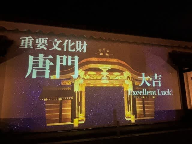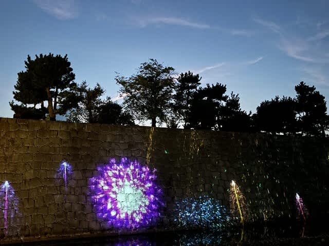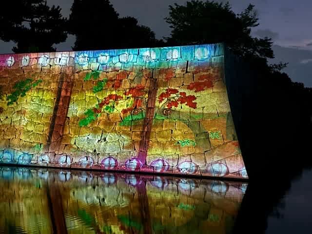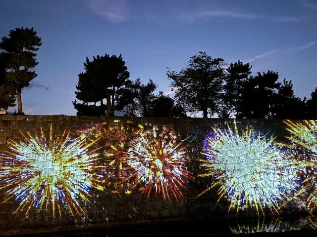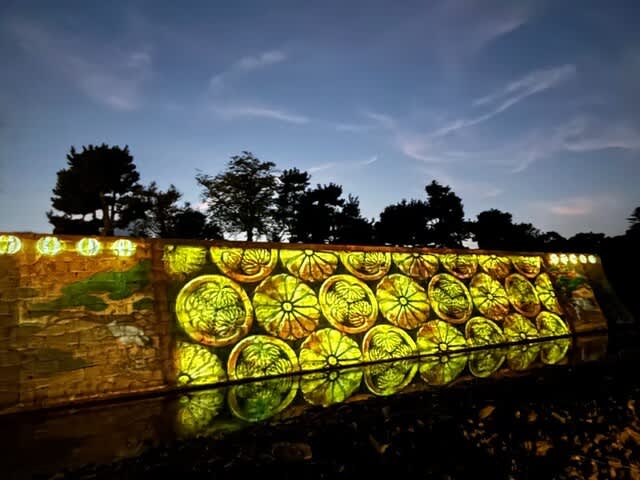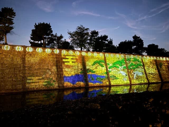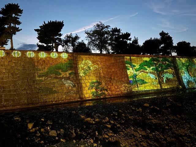 石垣ではプロジェクションマッピングが行われていました!松と鶴でおめでたいのです。