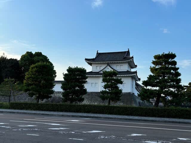地下鉄二条城前を上がると、夕方の東南櫓がこんにちは。