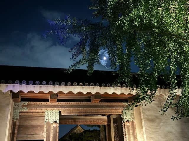 月と二条城大手門。外に出てしまいました。