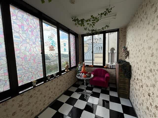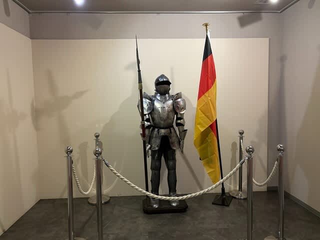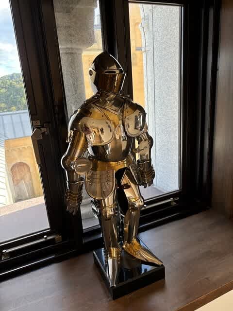 窓には鎧騎士の甲冑が。少しへっぴり腰(笑)