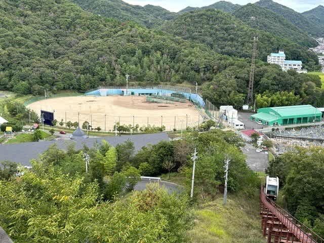 下に見える野球場は、古豪東洋大姫路高校のグラウンド。台風の後でも熱心に練習をされていましたよ。