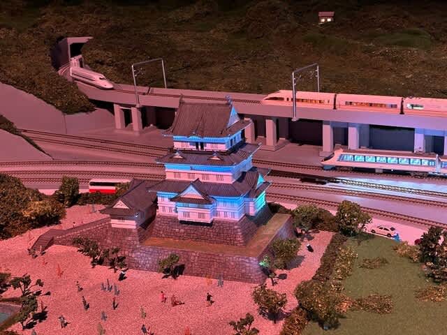 黄昏の小田原城、やっぱりロマンスカーが走ってくれています。
