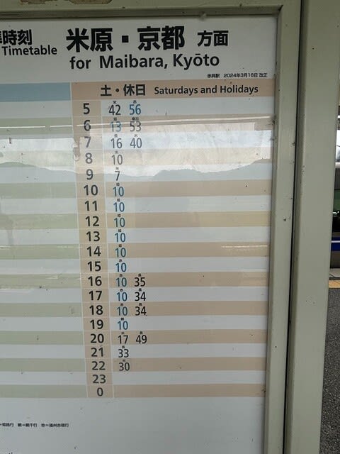 時刻表を確認、あちゃ~ほとんど1時間に1本です。用心して行きましょう。