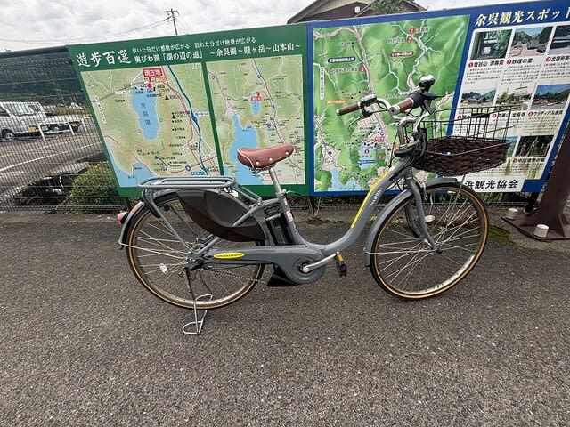 電動アシスト付き自転車、1日1,000円で駅でお借りしました。