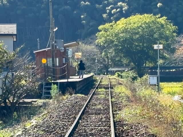 離れたところから見た一乗谷駅です、小さくて可愛い。