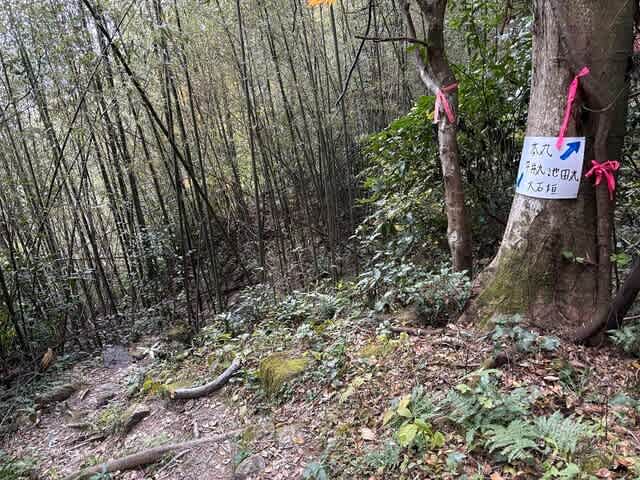 私もつられて右に行こうとしましたが、気づきました。右上は繖山に登るルートなのです。