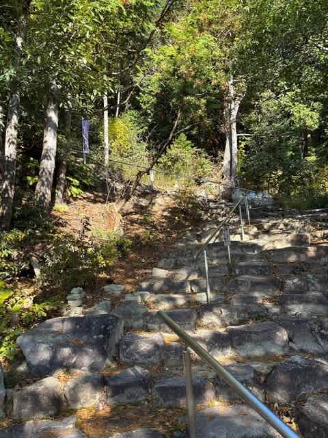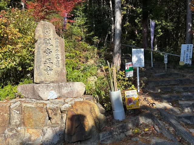 やったぁ、観音正寺に来ました。最後の難関、この石段を登りますよ。