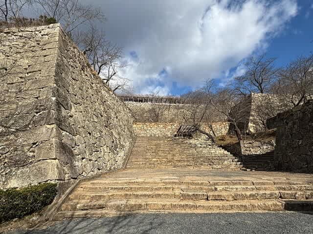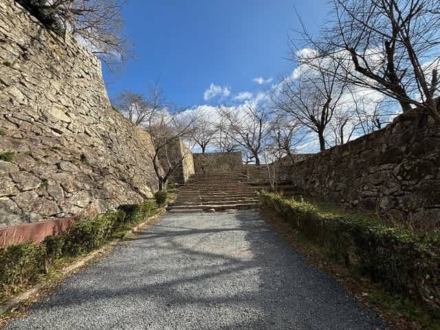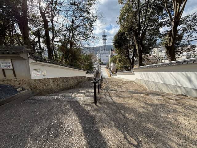 こちらは大手口、坂道を下ると駅の方へ向かいますよ。