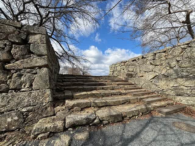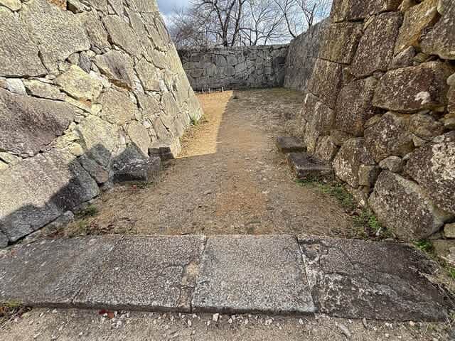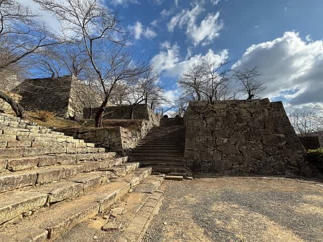 階段を登って、登って、石垣を越えて、越えて、渡って、渡って。