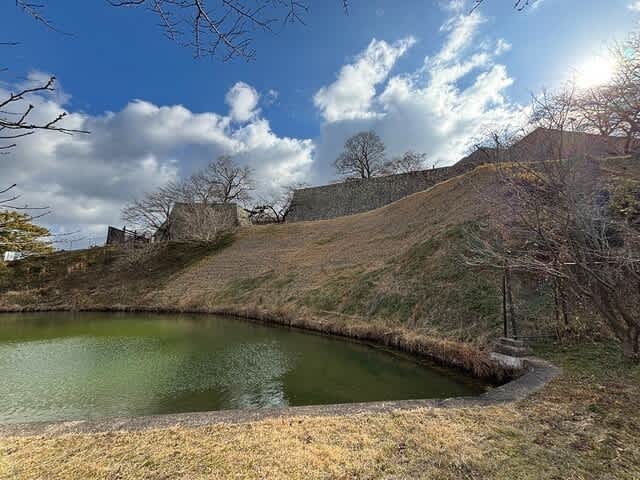 城内の池の上にも石垣。こちらは裏門ですが、今日現在は入れないみたいです。