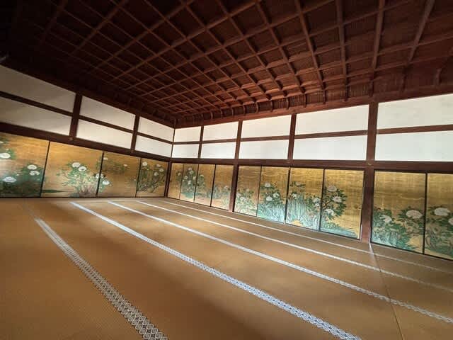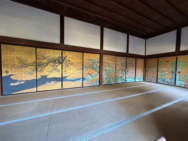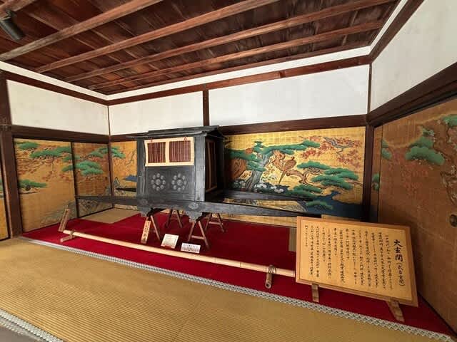 玄関にあるのは狩野永徳の松に山鳥図、そして後宇多法皇ご使用の輿なんだとか( ゚Д゚)